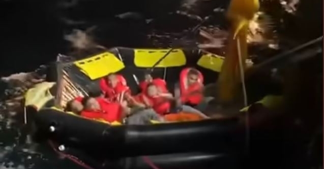 海軍在Twitter發布的照片與影片顯示,一群穿上橙色救生衣的官兵在黑夜中身處黑色充氣式橡皮艇上,在波濤洶湧的海上駛離沉船。