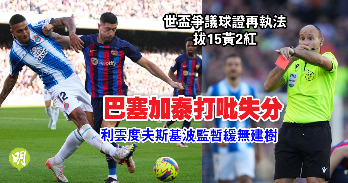 巴塞隆拿射手羅拔利雲度夫斯基西甲波監暫緩,但今晚(31日)對愛斯賓奴未有進帳。巴塞最終在這場末段10打10的加泰隆尼亞打吡遭逼和1:1,被宿敵皇家馬德里追至同分,僅以得失球差優勢力保住榜首位置。
