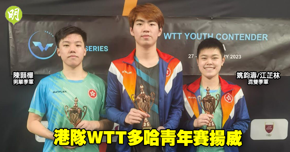 WTT多哈青少年挑戰賽昨晚(30日)收官,港隊代表陳顥樺在男單4強單至決勝局飲恨,混雙組合姚鈞濤/江芷林則於4強反勝為敗,同得季軍。