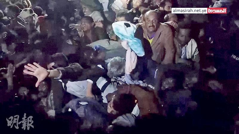 【明報專訊】也門首都薩那周四(20日)一場派錢活動吸引數以百計群眾爭先領取,不幸觸發人踩人慘劇,造成最少85人死亡、逾300人受傷。