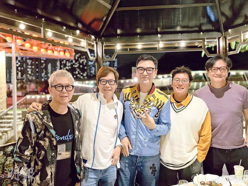 【明報專訊】彭健新日前74歲生日,連日來與不同朋友慶祝,他在社交網上載照片,開心留言:「四月是我的生日月,由於好朋友太忙了,唯有分段慶祝吧!」相中見到他與溫拿樂隊成員譚詠麟、陳友及葉智強合照,但未見鍾鎮濤。其他慶祝聚會還有陳百祥、黃杏秀及雷安娜等。之後溫拿五虎終於合體,鍾鎮濤在社交網分享5人合照,寫道:「今天的溫拿五虎。」譚詠麟轉發並留言:「祝健仔正日生日快樂!」網民看到較少露面的葉智強都好驚喜,焦點則落在他一頭銀髮,讚他有型,狀態不錯。