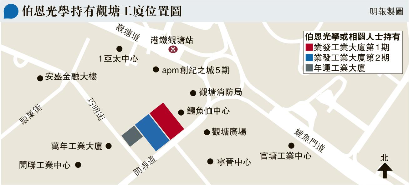 翻查資料,從事生產手機屏幕起家的伯恩光學,近年轉型收購工廈,包括觀塘開源道77號業發工業大廈第1及2期,以及巧明街119至121號年運工業大廈,3個項目均透過強拍統一業權,其中業發工業大廈第2期最先在2017年12月統一業權,餘下兩個項目則在今年先後完成拍賣,共涉資逾50.98億元。
