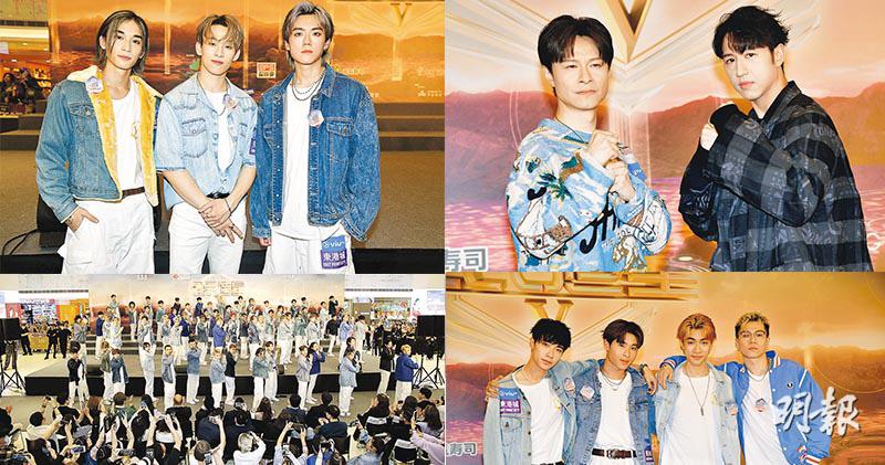 【明報專訊】ViuTV選秀節目《全民造星V》將於下周一(15日)首播,昨日其中68名參賽者,聯同導師陳健安、馮允謙、韋羅莎及主持強尼到將軍澳商場出席記者會造勢,吸引大批粉絲圍觀,為自己支持的參賽者打氣,場面熱鬧。現場播出兩組導師的「搶人」奇招片段,參賽者則勁歌熱舞演繹全新編排的節目主題曲《前傳》。1號王鋒、2號魏念恩(Nathan)及99號黃家灝(KC)跳群體舞及大合照時均獲安排企中間位置,顯然受重視,3人更是馮允謙心水之選。