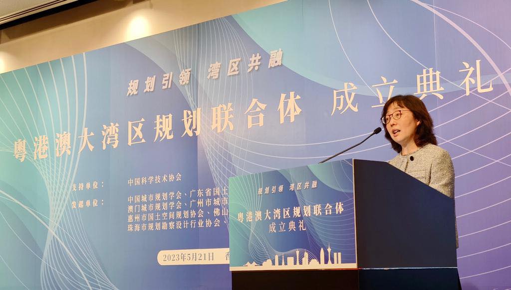 甯漢豪今參加「第二屆大灣區工程師論壇」的開幕典禮及粵港澳大灣區規劃聯合體成立活動,她致辭時說,特區政府及粵港澳大灣區各城市的規劃部門,一直透過不同途徑就城市規劃合作保持連繫及溝通,相信聯合體透過加強交流合作,能為大灣區高質量發展打開新篇章。