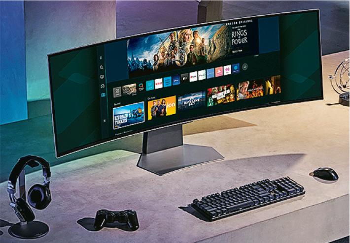 Samsung的1800R曲面屏幕Odyssey OLED G9,以32:9畫面比例營造出廣闊視野和沉浸感。搭載的量子AI處理器能提升畫面細節,並且獲得VESA Display HDR 400 True Black認證。G9擁有240Hz更新率、0.03毫秒反應時間,亦支援AMD Freesync Premium Pro,消除畫面斷續、撕裂、輸入延遲,從而帶來極速流暢畫面和震撼包圍感。