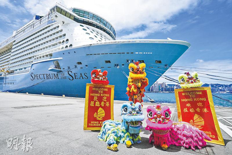 【明報專訊】皇家加勒比國際遊輪旗下「海洋光譜號」疫後重返香港,落實明年12月起再以香港作為母港,旅發局昨於啟德郵輪碼頭舉行歡迎儀式。皇家加勒比國際遊輪香港區董事總經理馮啟聰表示,對香港市場有信心,計劃未來數年開辦更多以香港作為起點的航線。
