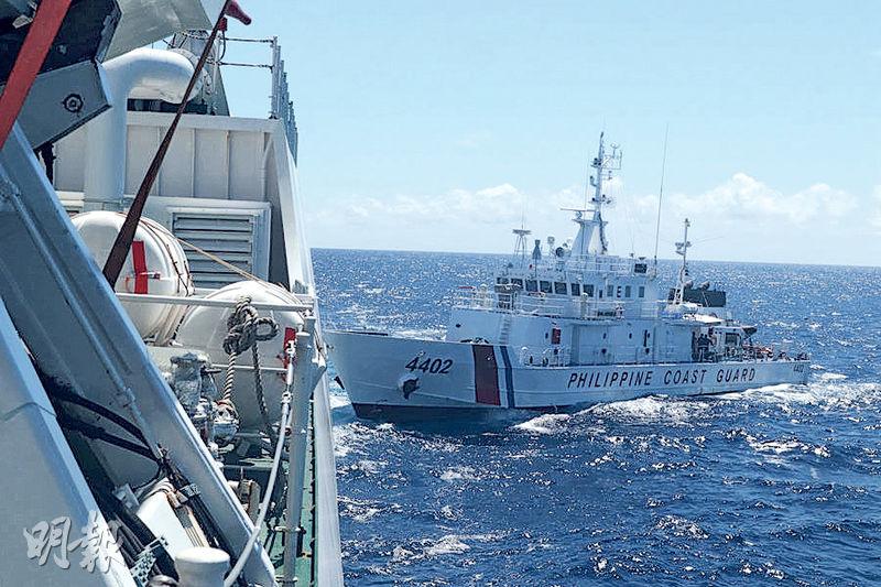 報道稱,中國海警5304艦尾隨菲艇,另外3艘海警艦分隔開菲補給船;隨後5305艦加入,攔阻MRRV 4402。中國海警局前日發布圖片時則提到,菲律賓海警4402船危險接近中國海警5305艦。