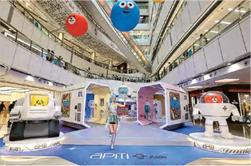 【明報專訊】喜歡結交新朋友的MOMO帶同好朋友,一同乘坐巨型飛船降落觀塘!新鴻基地產旗艦商場apm與知名潮玩品牌「MOMO PLANET」合作,把擁有藍色皮膚和巨大圓耳朵的MOMO居住的神秘星球搬到apm,打造面積超過2000呎的「夏日潮玩MOMO太空站」,設置6大「太空基地」,其中包括多個打卡位,如「13呎MOMO巨型飛船」、上下顛倒的錯覺空間「無重太空船」,還有展出多幅珍藏畫作及超大公仔的「MOMO PLANET藝術館」,可以了解MOMO與貓狗好朋友MiU和OiOi在星球生活的大小事。