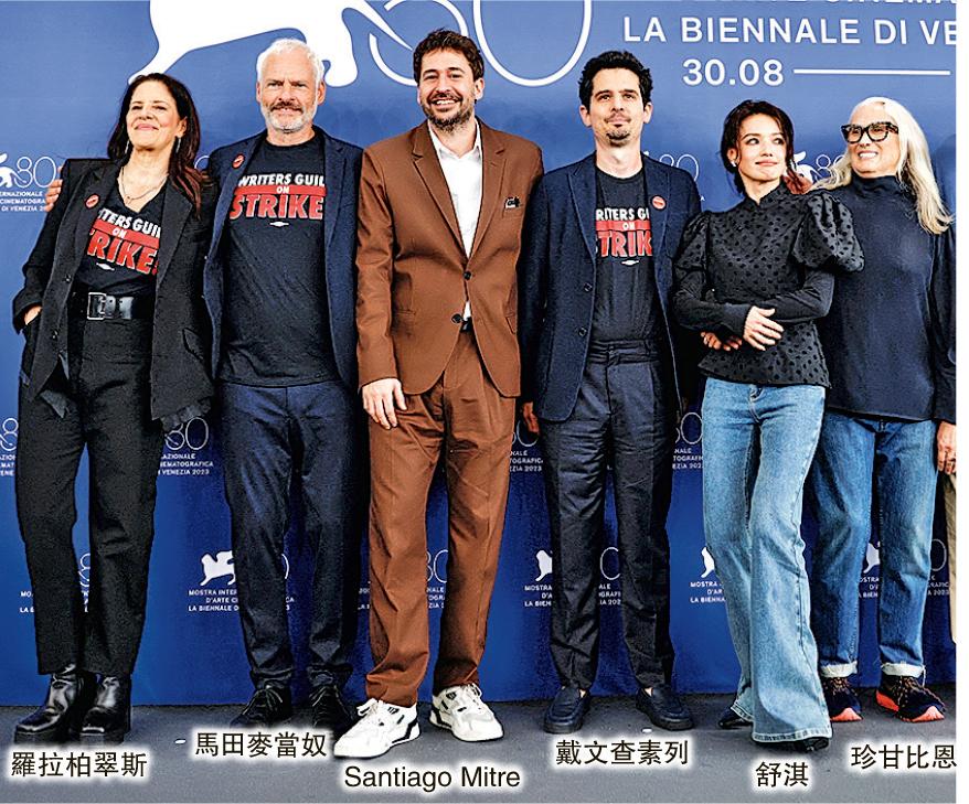【明報專訊】第80屆威尼斯影展香港時間今日凌晨舉行開幕禮,受美國編劇及演員兩公會罷工影響,不少大片商及串流平台的主競賽單元電影主角未能到場,除非像《盜火線》米高曼(Michael Mann)執導新片《Ferrari》拿到演員公會臨時協議,男主角阿當戴華(Adam Driver)因而獲得豁免,屆時可亮相。以《星聲夢裡人》金像導演戴文查素列(Damien Chazelle)為首的主競賽評審,率領《犬山記》珍甘比恩(Jane Campion)、《廣告牌殺人事件》馬田麥當奴(Martin McDonagh)、紀錄片《所有的美麗與血淚》女導演羅拉柏翠斯(Laura Poitras)及台灣女星舒淇等昨日傍晚率先會見傳媒,其中戴文、馬田及羅拉均穿上編劇公會T恤以示支持同業罷工。另外,梁朝偉今年將獲頒終身成就金獅獎,成為首名華裔演員得此殊榮,頒獎禮將於周六(2日)當地時間下午兩點舉行。
