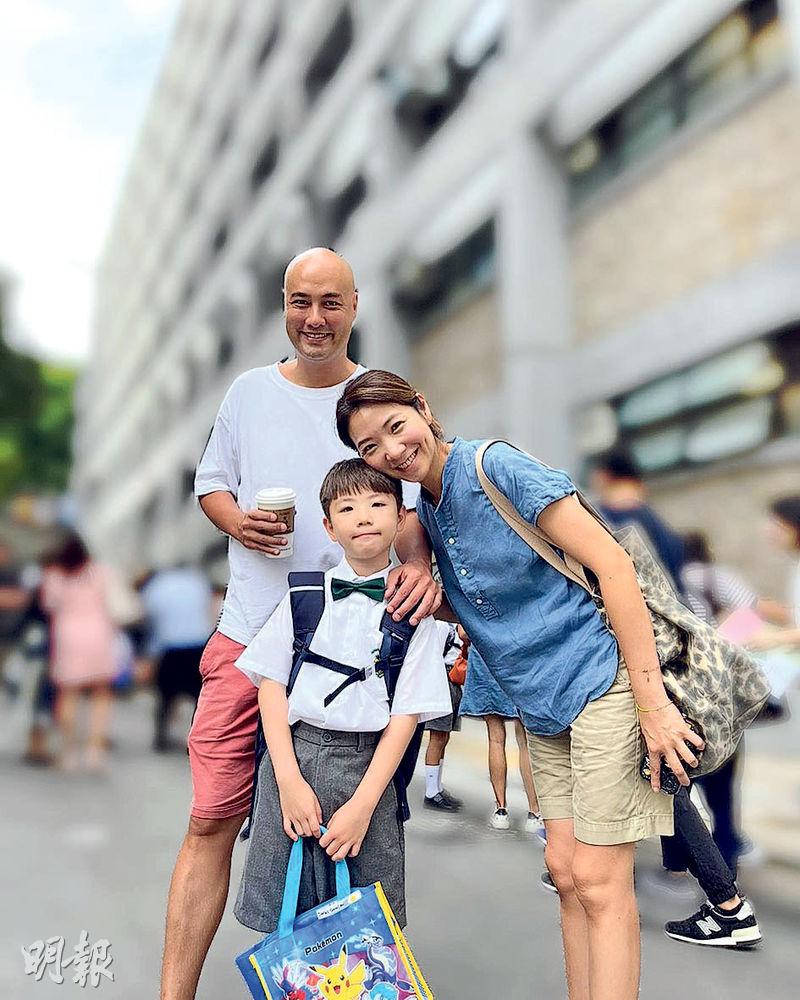【明報專訊】因超強颱風「蘇拉」襲港,令開學日延至昨日,不少藝人父母一早送小朋友返學。車婉婉6歲兒子BBQ升小一,她昨早在社交平台上載跟澳籍老公Jonathon一齊送兒子返學的照片,留言︰「高齡日誌之小學雞仔來了!精神BBQ上小學啦!大個仔,好多事情要學識自己處理,要好好學習呀,往後日子就勞煩各位老師們教導。祝各位父母及小朋友開學大吉、學習愉快!BBQ先生升上小一,大得太快。開學大吉!小學雞仔!」
