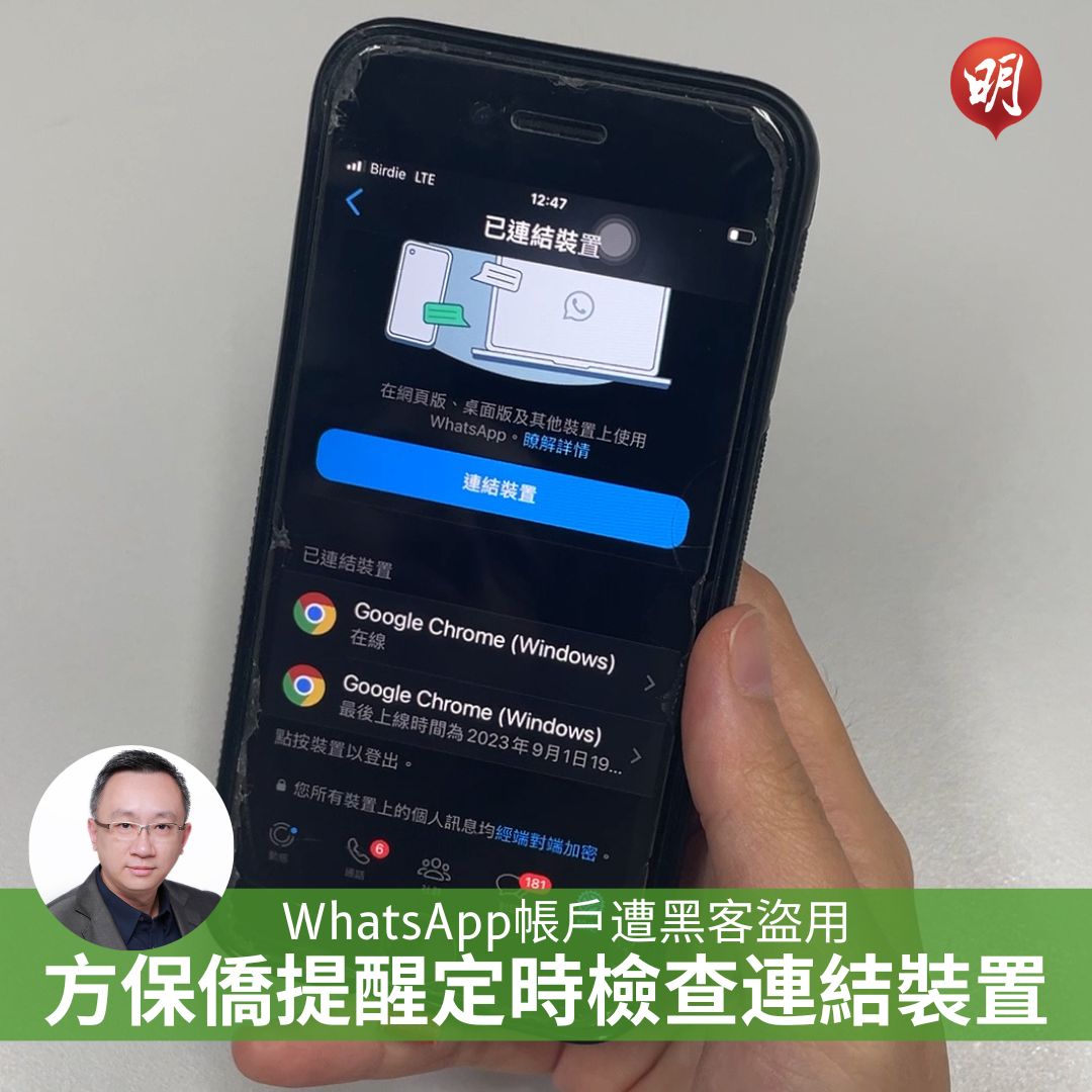 WhatsApp帳戶遭黑客冒名借錢 方保僑提醒:定時查看WhatsApp連結裝置及登出 (19:18)