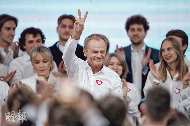 【明報專訊】波蘭周日(15日)舉行國會大選,截至香港時間昨晚11時,在完成75%選區點票後,執政右翼法律與公正黨(PiS)得票雖領先但未過半,其潛在盟友、反對援烏的極右自由與獨立聯盟得票也遜預期,料無法組成政府;反之得票率居次、由前總理兼歐洲理事會前主席圖斯克領導的親歐派公民綱領黨(KO),有望與其他小黨合組中間偏左聯合政府。圖斯克昨宣布勝選,意味波蘭勢將變天,也讓烏克蘭鬆一口氣。