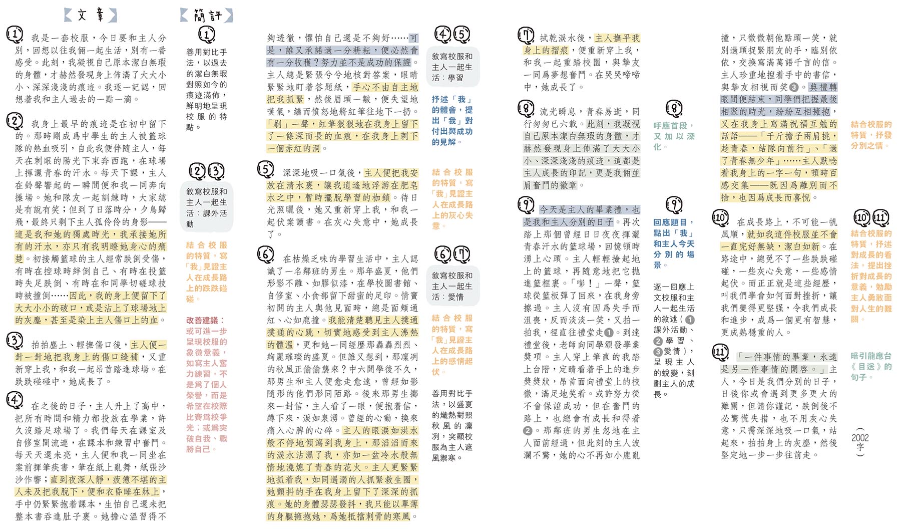 教育 題目:我是一套校服,今日要和主人分別,回想以往我倆一起生活,別有一番感受 發佈於 2 年 前 2023 年 10 月 24 日 By 明報 【明報專訊】〈木部十二劃〉這類作品實與文憑試卷二的「開放題」相類,如「足印」、「禁區」等均要求考生抓緊事物的特徵,從而引發聯想,抒情說理。2022年文憑試卷二第一題「校服的自述」雖是記敘文,但取材、立意均必須緊密扣連校服的特質和意涵,以校園生活為藍本,寫「我」與主人一起經歷的青春歲月。因此,考生須以「校服」作為敘事的軸心,選取具體、典型的片段,有條不紊地回憶「我」與主人昔日並肩同行的生活片段。若「校服」的角色可被其他事物,如書包、鉛筆、皮鞋等取代,那麼作品則未能回應寫作要求,有離題之嫌。 相關文章: Up Next 錄音事件3浸大生罰停學 一罰校內服務80小時 不要錯過 理大簽協議 武漢建創科研究院 市委書記盼吸資源聚人才 繼續閱讀 贊助商 猜你喜歡