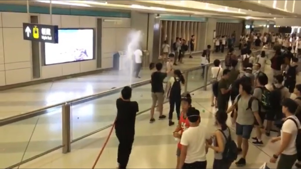 A隨即看到閘內有水花噴出,閘外的主要穿白衣的人則躲避水花,其後閘內的人叫「入嚟吖」,閘外的人則叫「你出嚟吖」,「我感覺係有啲挑釁嘅感覺,好似撩交嗌咁」,兩幫人亦互相擲物,她認出閘內一名男子是林卓廷。A在控方詢問下補充,認為主要挑釁的是閘內的人,因為閘外的人「唔係好想入去」,看似「觀望」狀態。