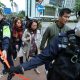 雙方一度理論,警員警告他的行為會「煽動」途人,男子未有跟從警方指示,遭數名警員合力按在地上,以涉嫌「在公眾地方行為不檢」及「阻礙警務人員執行職務」拘捕,案件交由灣仔警區重案組跟進。男子被制服期間有途人高喊「獻花無罪」。