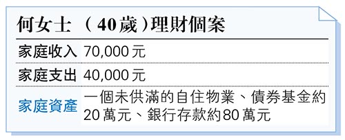 說完了產品的選擇,筆者希望回到理財規劃的本質,畢竟產品的選擇很多元化,也是日新月異。人生有不同的財富管理階段,籠統可分為累積階段及提領階段,債券收息為提領工具,特別是助退休人士獲取現金流,但長期的增值效果不足。如果正值壯年,通常有條件進取一點,至少可以做一些長遠部署,加上利率肯定會高高低低,鎖定了高息幾年後,如果又變回低息環境則又要面對再投資的煩惱,但挑選具增長潛力的股票或基金,又或者是合適的儲蓄保險,則有較大的概率可享受到複息增值,何女士可留意,作更均衡的資產配置。