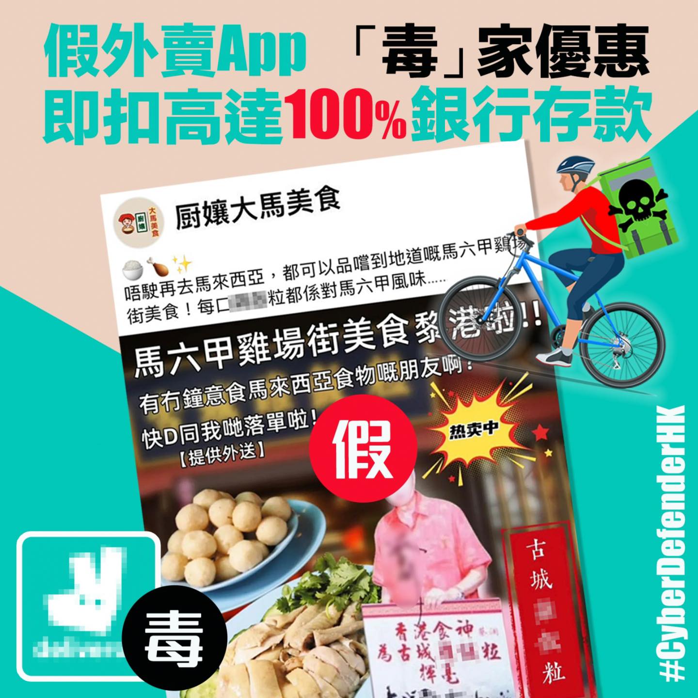 警方表示,一名男子看到社交專頁的贊助帖文聲稱出售馬來西亞美食,並轉至WhatsApp查詢,其間被誘騙按下連結安裝與「戶戶送」同名的Android應用程式訂貨,並在程式內輸入銀行戶口登入名稱、密碼等,騙徒其後登入其網上銀行戶口轉走約130萬元存款。