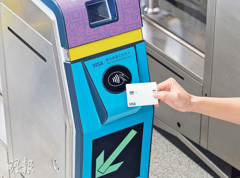 【明報專訊】港鐵(0066)宣布由12月23日起分階段推出感應式信用卡乘搭港鐵服務,乘客當日起可於貼有淺藍色標示特定閘機使用Visa卡出入閘,明年第三季將涵蓋更多信用卡作支付。
