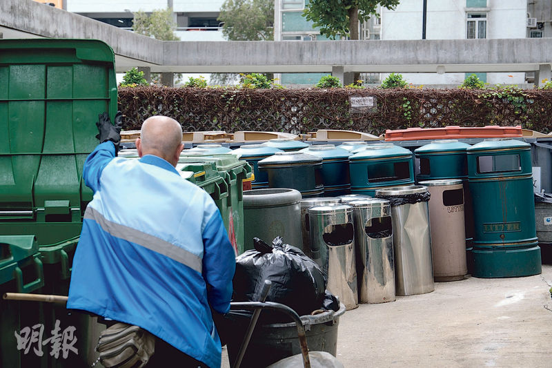環保署早前就設有物業管理組織的住宅發布「垃圾收費良好作業指引」,提到從其他城市經驗所見,垃圾收費實施初期,處所公用地方或有棄置住宅垃圾情况,建議物管公司按情况減少或調整處所內公用地方的垃圾桶(見表)。