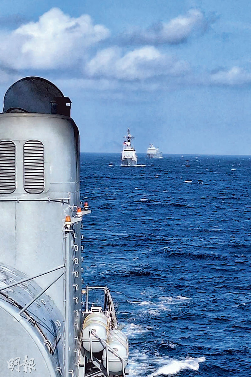 【明報專訊】菲律賓軍方前天表示,菲律賓和美國軍艦在南海聯合巡邏時,遭兩艘中國軍艦跟蹤。解放軍南部戰區昨(5日)通報,南部戰區昨在南海海域組織例行海空聯合演訓。