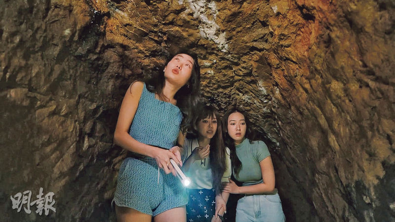 單睇坑道入口已經夠陰森,難怪成為恐怖片取景地。3名女主持在坑道外忸怩一陣後,最終由姜宇夫帶頭入內。建於二戰時期作軍事用途的坑道,非常狹窄而且潮濕,她們一步一驚心,既要小心跣腳又要留意不時出沒的小昆蟲、蝙蝠。弔詭的是坑道四通八達,部分出口更連接現時的民居,掛有「勿進」告示牌,3人幾經辛苦完成10分鐘的路程。
