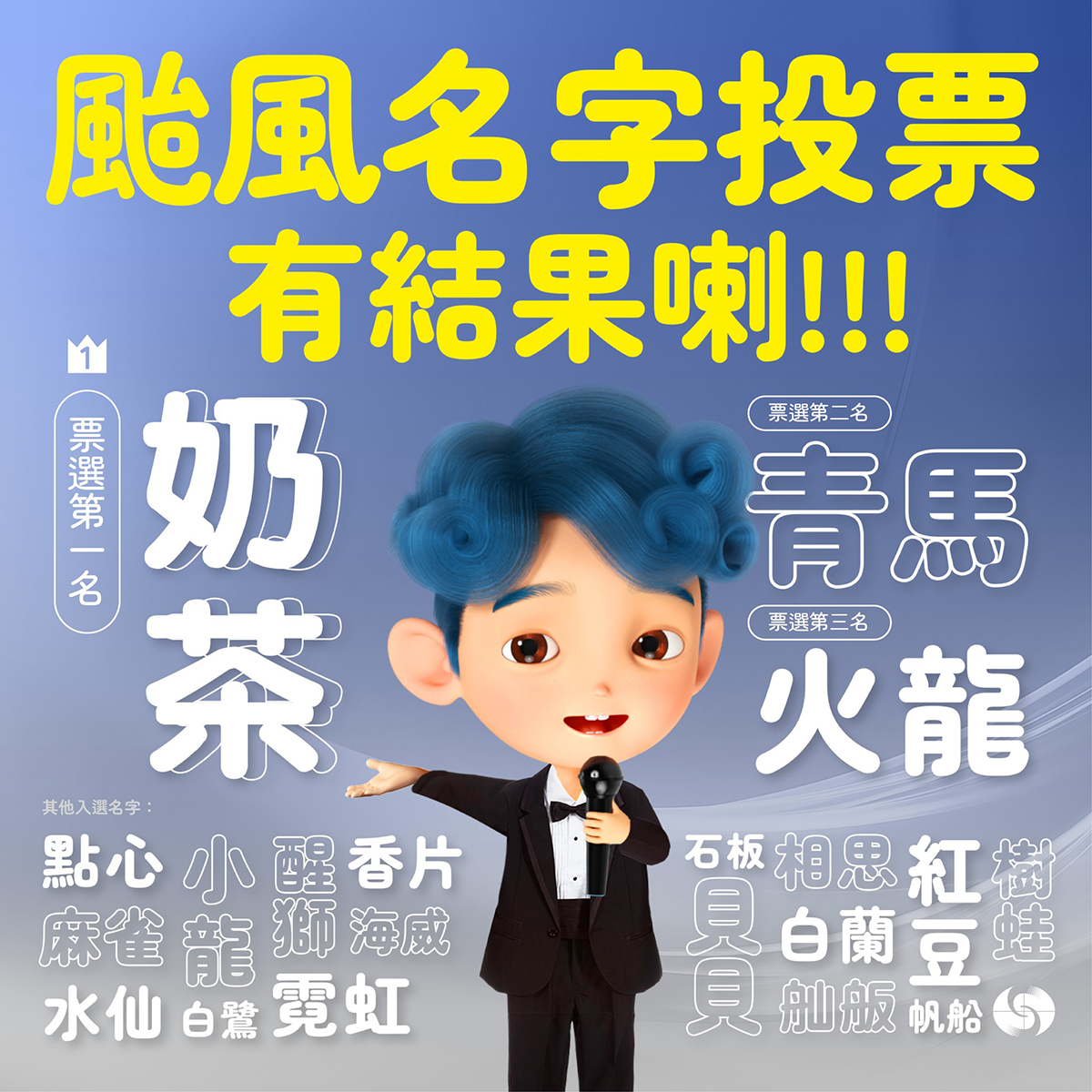即時港聞 逾2萬人次投選熱帶氣旋名字 「奶茶」成票王 (17:11) 發佈於 2 年 前 2024 年 1 月 17 日 By 明報 由天文台主辦的熱帶氣旋名字徵集活動的公眾網上投票階段已圓滿結束,逾二萬人次投票。天文台今日(17日)公布投票結果,其中「奶茶」的得票最高,獲15,750票,其次為「青馬」及「火龍」。 天文台從40個合適及具香港特色的入圍熱帶氣旋名字中選出以下得票最高的20個名字,它們將會加至香港的熱帶氣旋名字候補名單,其餘入圍名字包括「點心」、「麻雀」、「水仙」、「小龍」、「霓虹」、「醒獅」、「白鷺」、「香片」、「海威」、「貝貝」、「相思」、「紅豆」、「石板」、「白蘭」、「舢舨」、「帆船」及「樹蛙」。 相關文章:天文台熱帶氣旋編輯推介 Up Next 黎智英案|張劍虹作供稱黎智英佔中後積極參與《蘋果》運作 19年指示要呼籲上街及促西方制裁 (15:44) 不要錯過 新油麻地避風塘駁船起火 濃煙密佈 (18:28) 繼續閱讀 贊助商 猜你喜歡 【Emily】天文台「矚目天氣及氣候事件選舉」 投票有機會獲紀念品 天氣|天文台:短暫時間有陽光 最高19°C (08:24) 天氣|天文台:周四多雲早晚有微雨 氣溫介乎17至20°C (20:57) 天氣|天文台:今早多區氣溫較昨日低1至2°C 日間最高21°C (08:24) 天氣|天文台:周三有一兩陣微雨 早上清涼市區最低17°C (21:01) 天氣|天文台:今日部分時間有陽光 市區最高氣溫料21°C。 (08:55)