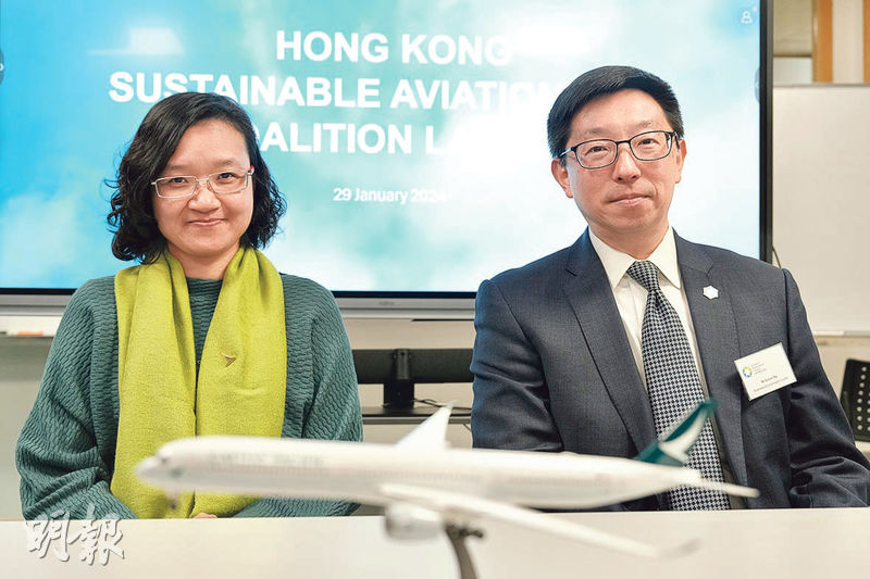 【明報專訊】政府力爭2050年前實現碳中和,本港運輸碳排放佔總碳排放近兩成,商界環保協會及國泰航空共同發起「香港可持續航空燃油聯盟」,噚日舉行啟動禮。商界環保協會行政總裁吳家穎話計劃為期3年,旨在推動政府及各界持份者交流與合作,為航空業提供可持續航空燃料(SAF)嘅應用路線圖同解決方案,以促進SAF嘅廣泛應用,最快今年底前向政府提交政策建議。