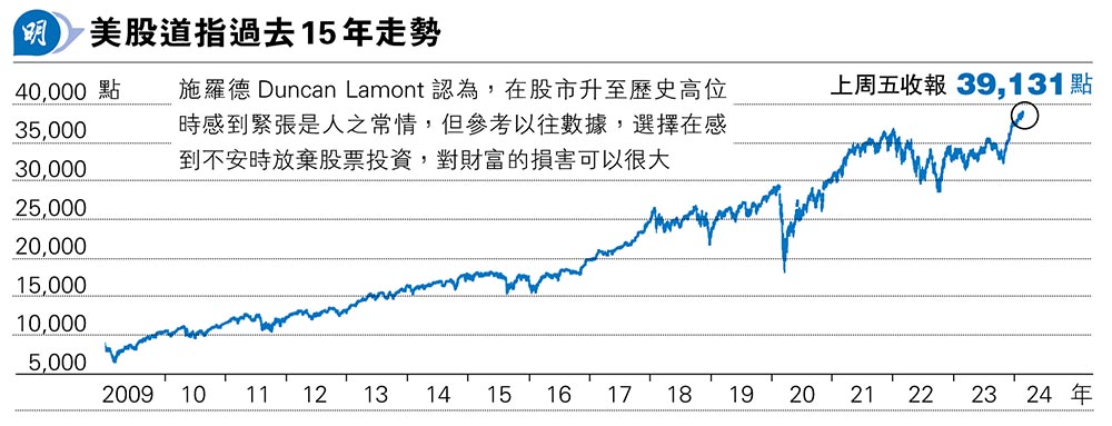 可是,近日多了分析認為,美股高處不勝寒,一旦回吐,好些投資者站立不安。或許觀察到此情况,施羅德投資策略研究部主管Duncan Lamont以「投資者不應因股市處於歷史高位而卻步入市」為題撰寫報告,稱參考1926年以來的美股回報數據分析,股市出現歷史高位的次數,比投資者想像中更為頻密;自1926年1月以來的1176個月份當中,股市有354個月份創下新高,佔整體時間的30%。