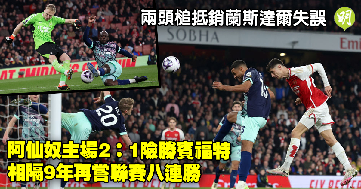 英超|阿仙奴兩頭槌抵銷蘭斯達爾失誤 主場2:1險勝賓福特 相隔9年再嘗聯賽八連勝 (16:19)