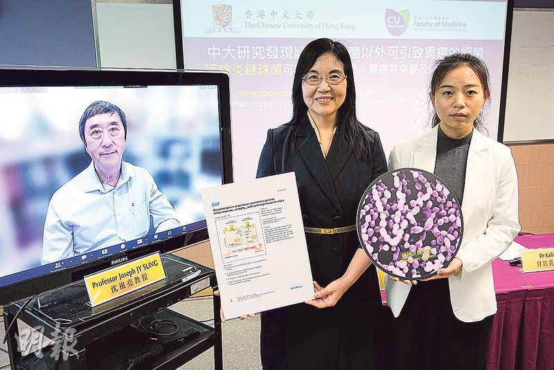 【明報專訊】幽門螺旋菌一直被認為是胃癌主要風險因素,惟僅有1%至3%感染者會患胃癌。中大醫學院最新研究發現,常見於人體口腔、鼻咽等部位的「咽峽炎鏈球菌」亦可引致胃癌。該研究透過小鼠實驗確立致癌機制,證實該細菌透過誘發胃部產生炎症及胃萎縮,促使胃腫瘤生長。研究團隊稱咽峽炎鏈球菌的感染比幽門螺旋菌普遍,且動物實驗顯示倘同時感染兩菌,患胃癌風險顯著提高。