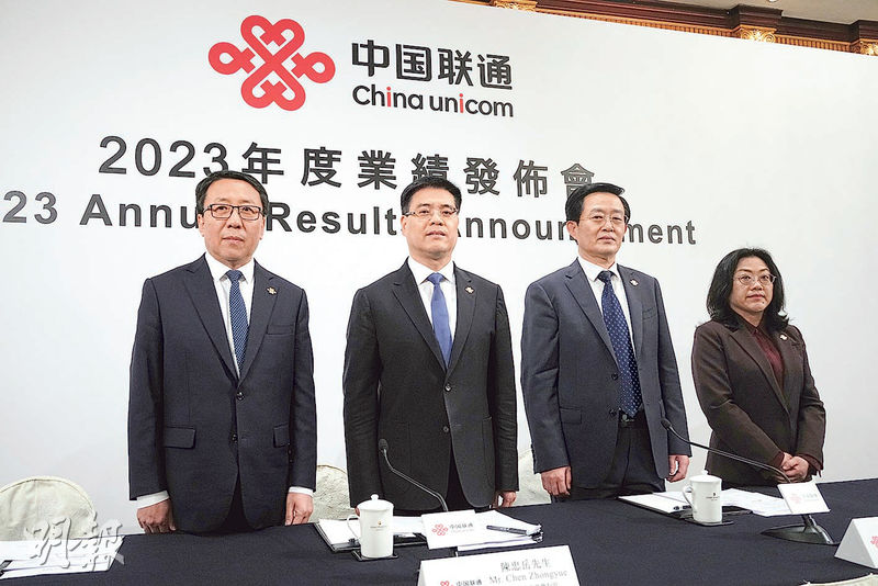 中聯通去年多賺12% 末期息增 派息比率增至55% CFO:今年不會低於去年水平