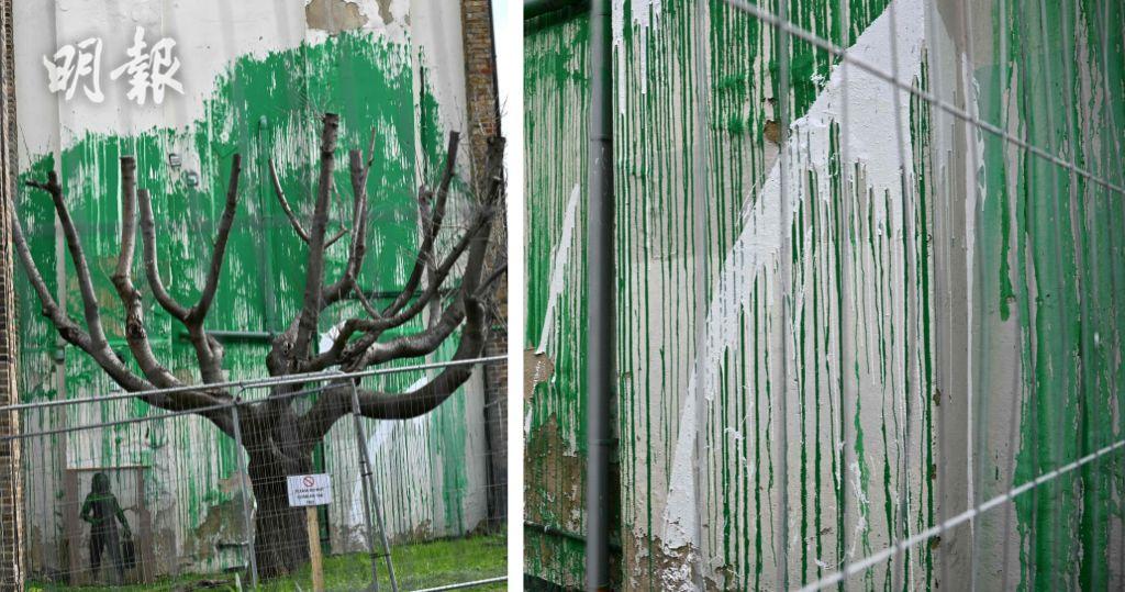 英國著名塗鴉大師Banksy周一(18日)於Instagram發布照片,於倫敦北部伊斯靈頓(Islington)利用一棵光禿枯木創作了新作品,變成一棵翠綠大樹,樹下畫了一個拿着噴料罐的人像。不過作品曝光兩天已遭到破壞,樹下部分出現白油。