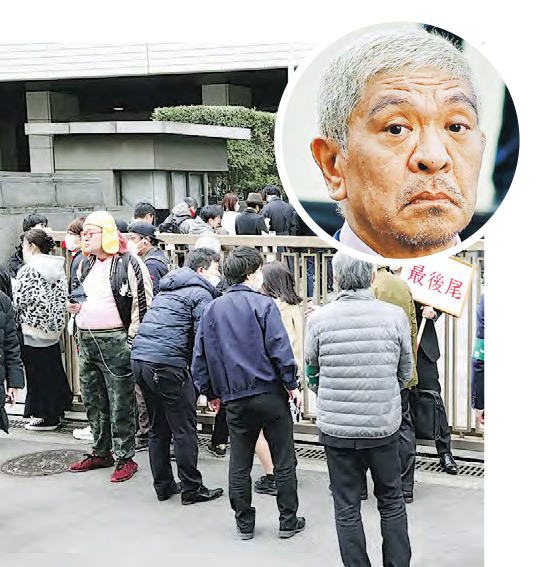 【明報專訊】日本雜誌《週刊文春》去年底報道,現年60歲的諧星松本人志於2015年命令後輩帶同新晉女星及模特兒出席派對,趁機性侵她們。松本否認報道,同時入稟東京地方法院控告《週刊文春》誹謗,要求索償5.5億日圓(約2800萬港元)。為了專心打官司,他更暫時停工。誹謗官司昨在東京地方法院開審,據日本傳媒報道,691名巿民到場排隊,爭取19個旁聽席位,超額36倍。審訊在下午2時半開始,松本人志未有出庭,三名律師作代表,《週刊文春》一方則派遣兩名律師應訊。