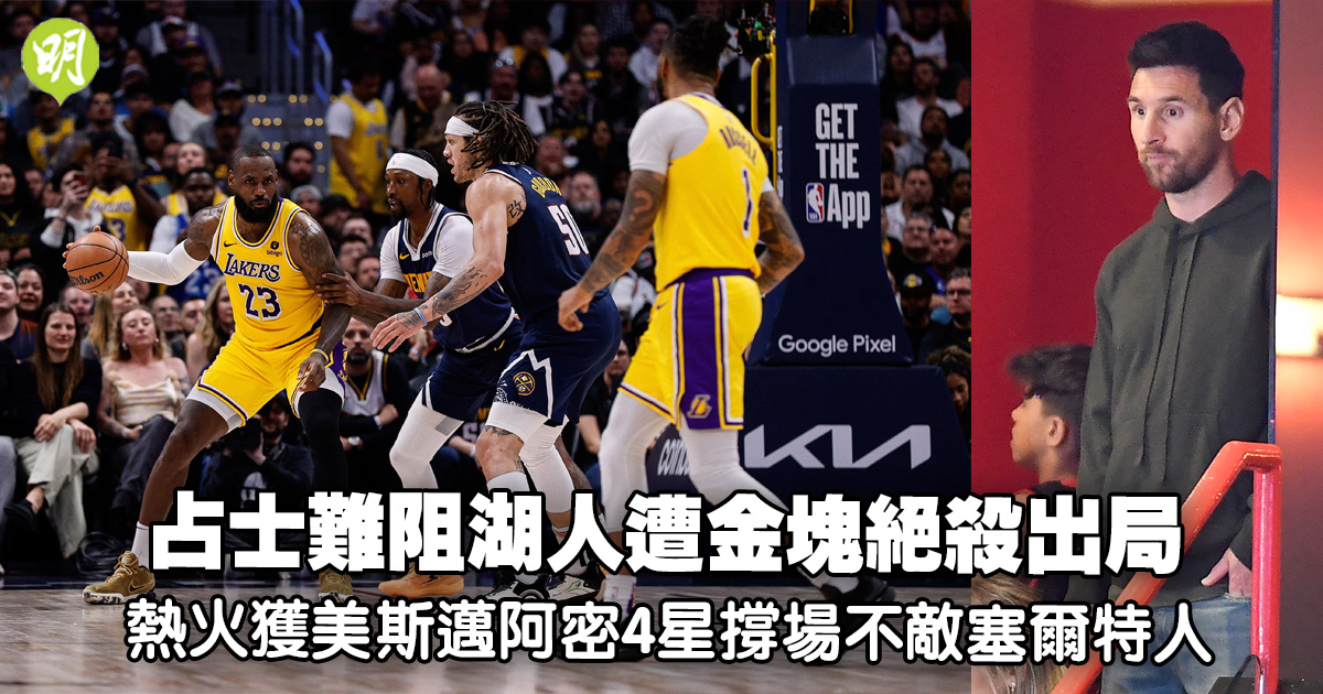 洛杉磯湖人今晨(30日)在NBA季後賽西岸首圈第5戰,縱有39歲老將球星勒邦占士攻入30分,惟作客仍遭衛冕的丹佛金塊絕殺,以106:108落敗,總場數輸1:4出局。