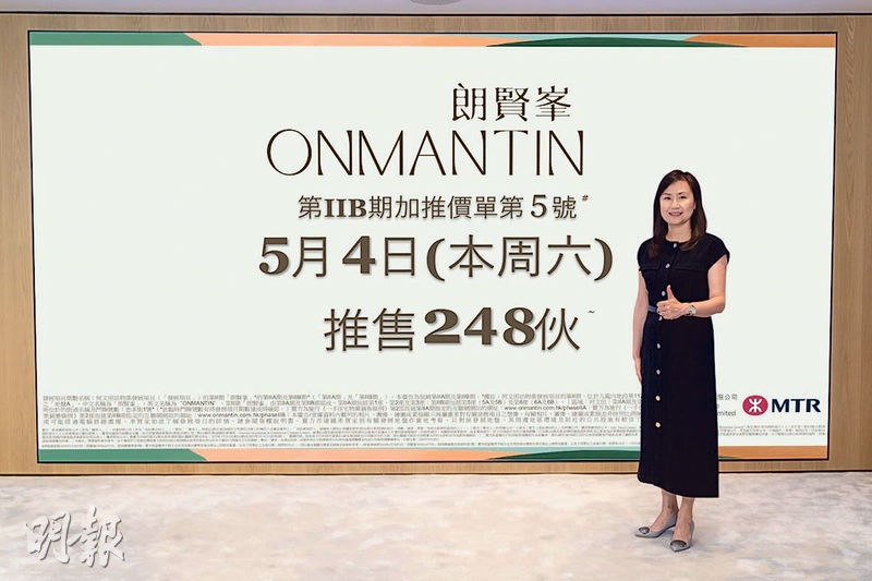 【明報專訊】各新盤把握五一黃金周檔期加快推售步伐,鷹君(0041)及港鐵(0066)合作的何文田朗賢峯,第四度加推第IIB期,涉134伙,項目已公布共568伙價單,只餘4伙頂層連天台的4房戶尚未推出。發展商周六次輪銷售248伙第IIB期單位,明日下午6時截票。最新5號價單折實均呎22,715元,較首張價單折實均呎19,988元高約14%,以最高折扣率18%計,折實價718.2萬至2030.7萬元,折實呎價1.85萬至 2.72萬元,撇除座向、樓層及景觀因素,發展商稱屬原價加推。
