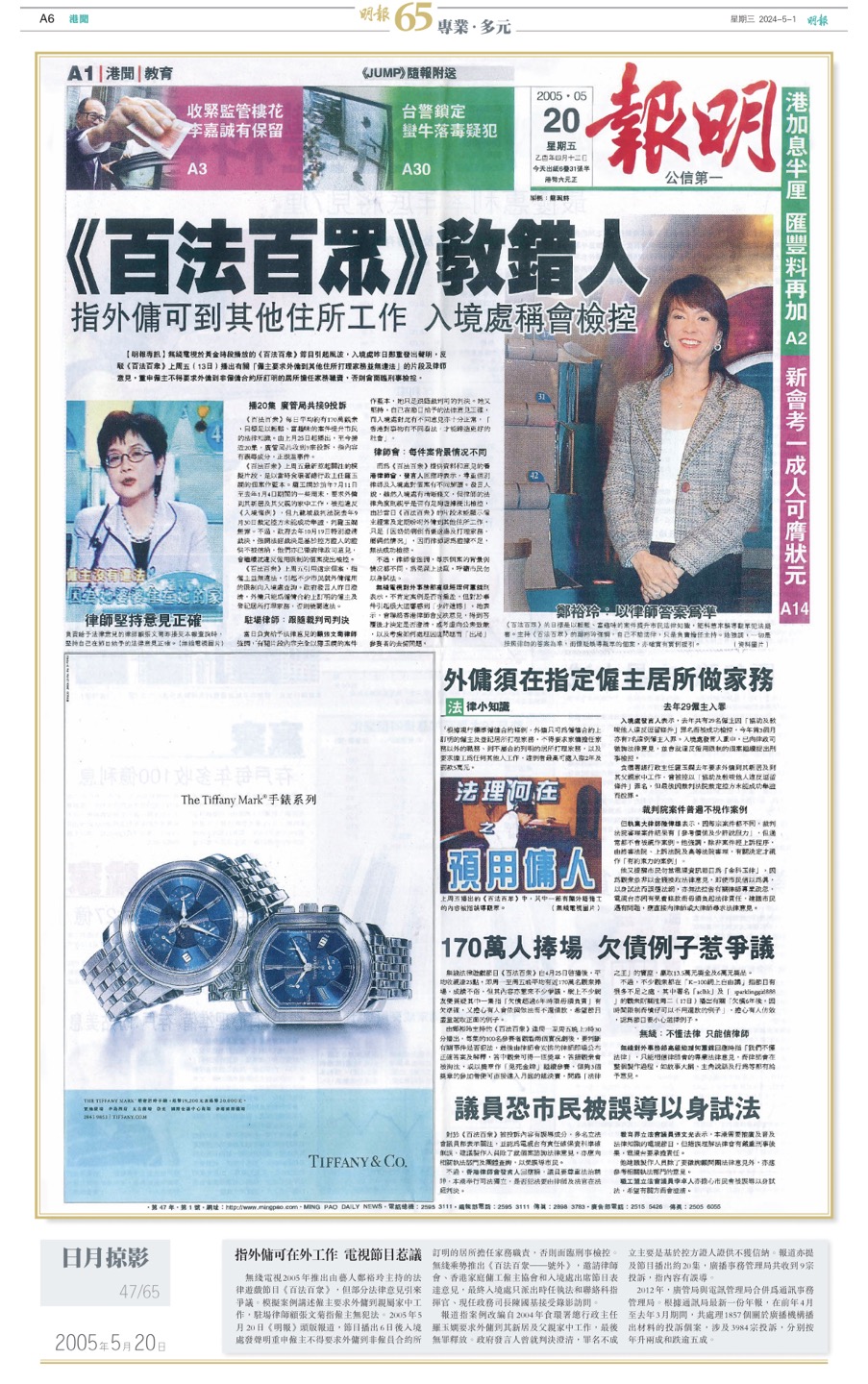 2005年5月20日:指外傭可在外工作 電視節目惹議