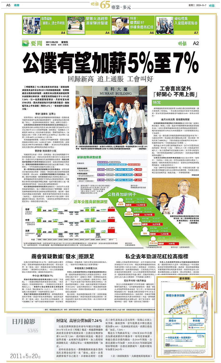 2011年5月20日:財儲足 高層公僕加薪7.24%