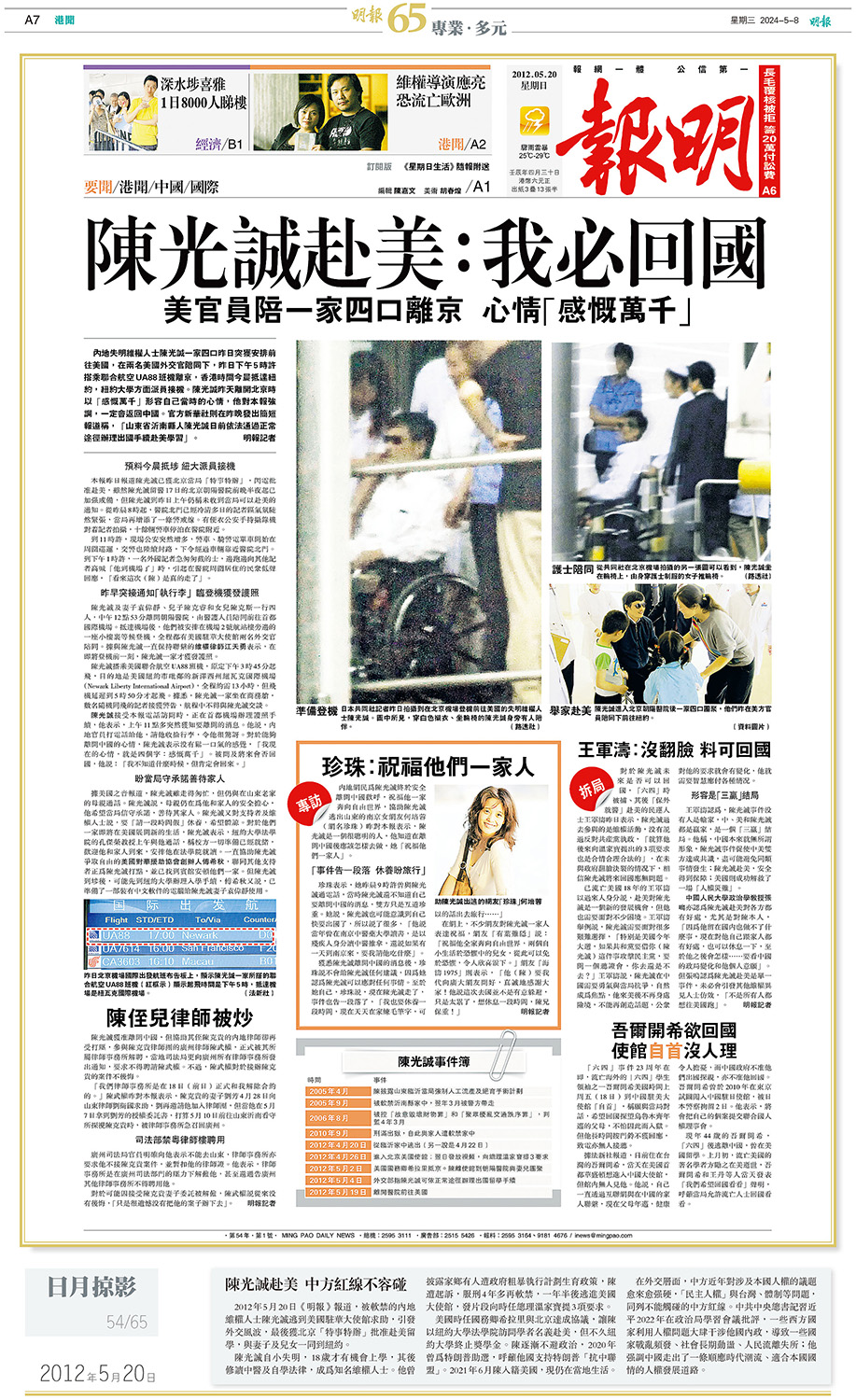2012年5月20日:陳光誠赴美 中方紅線不容碰