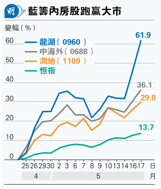 另外,由於政策轉向屬重大利好,近日內房板塊升浪亦由大藍籌擴展向二三線股,故今期第19頁「技術取勝」欄目亦一改過往推介藍籌為主的取態,與讀者就多隻二三線內房股作技術分析,相關投資風險較高,若跟進的話須控制注碼。