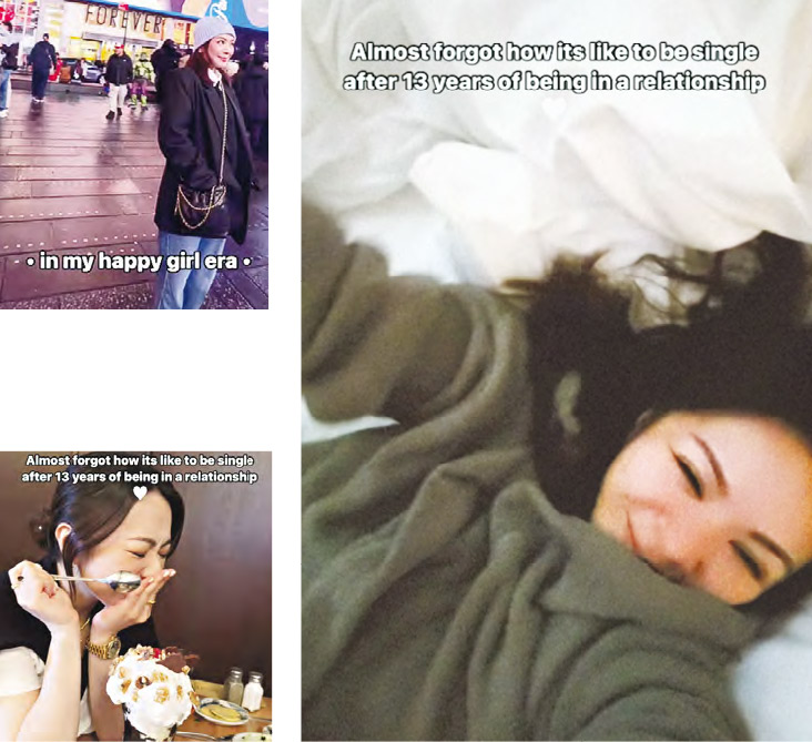 JW昨日於社交網上載旅行吃喝玩樂短片,宣布回復單身:「Almost forgot how its like to be single after 13 years of being in a relationship(處於戀愛關係13年後,幾乎忘記了單身是怎樣)」、「in my happy girl era!(快樂女生時代)」並留言:「Life is great, I’ll be okay(生活很好,我會好的)」