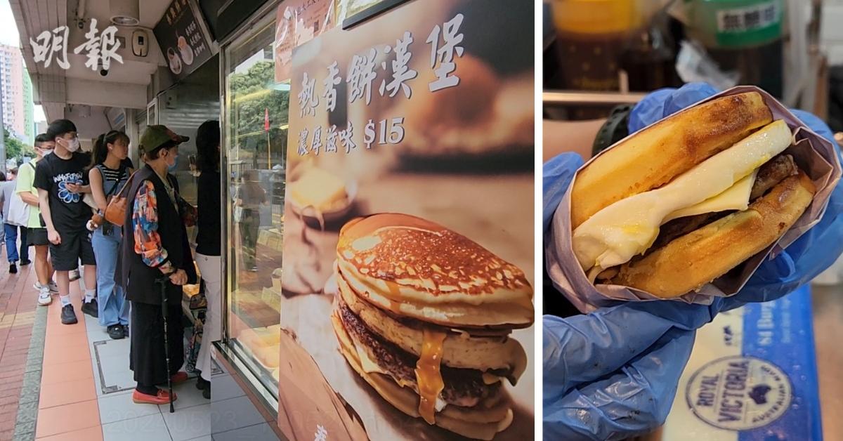 漢堡扒、芝士、蛋,加上秘製醬汁,用兩塊熱香餅夾着,荃灣一間街坊餅店近日推出「熱香餅漢堡」成為網上熱話,每日出爐都吸引街坊和跨區客排隊。明報電子平台組記者昨日(23日)中午前到店外觀察,出爐約半小時前已有40多人排隊。(採訪、拍攝及剪接:陳凱雯)