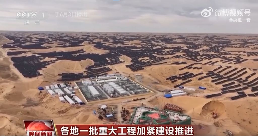 與同等規模的燃煤電廠相比,該項目每年可節約標準煤約為194.88萬噸,減少二氧化碳排放量607.17萬噸、煙塵約165.65萬噸、氮氧化合物約91,350噸,對加快當地能源結構優化、推動電力市場建設具有重要意義,並對推動防風治沙具有積極作用。(烏魯木齊市米東區融媒體中心/觀察者網)