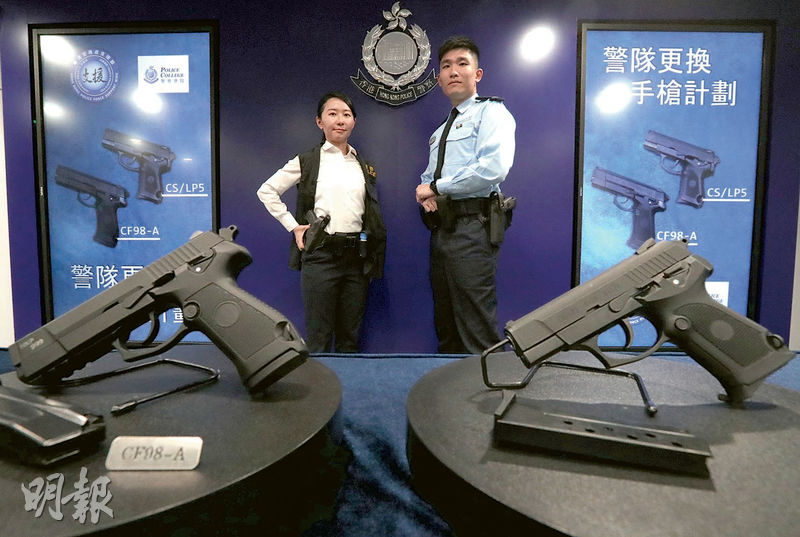 【明報專訊】警方引入兩款國產半自動手槍,逐步取代兩款美國製手槍。首批完成訓練人員本月底將配備新手槍執勤。據悉,受訓需時約3天並要通過考核,預計整個警隊需約12年才能全面更換。《港區國安法》實施後美國實施制裁,包括禁止向本港出售警察裝備。被問到是否憂外國制裁影響添置裝備而更換手槍,支援部警司高卓恒昨稱,需確保維修、保養及供應可持續性,採購新裝備需具前瞻,配合警隊長遠需要和行動部署。他強調警方採購時保持開放,考慮不同地方供應的手槍,按政府既定程序「擇優而取」。