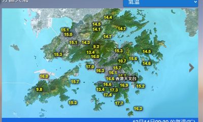 【10:01】上午9時50分,天文台錄得30.4°C,相對濕度80%。本港地區今日(13日)部分時間有陽光,有幾陣驟雨。日間酷熱,最高氣溫約34°C,吹和緩南至東南風。展望明日仍然酷熱,部分時間有陽光,但有一兩陣驟雨。隨後兩三日雲量增多及有幾陣驟雨。(天文台)