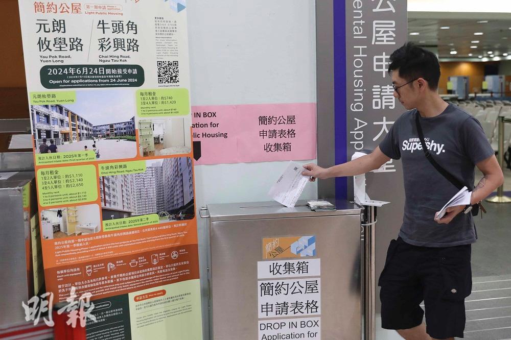 第一期簡約公屋共提供約4400個單位,兩項目分別位於元朗攸壆路及牛頭角彩興路,單位租金介乎740至2650元。簡約公屋申請人須為輪候傳統公屋3年或以上,以家庭申請為優先,如居於不適切居所較長時間、家中有長者或子女等可獲額外加分。房屋局早前已向合資格者寄出申請表,今日前交表將獲優先處理。若申請者今次未獲編配,當下次其他項目推出時,仍可獲優先處理。