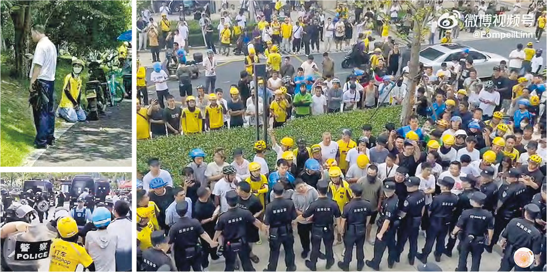 誤踩圍欄遭保安收車匙 騎手跪地觸發示威