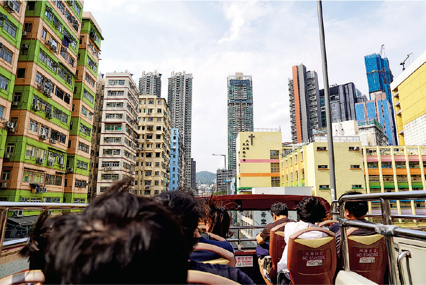 去年開始,我辦了十幾個開篷巴士團:最初是設計一條巴士路線,作為一個藝術展覽的作品,後來愈辦愈多——從山道天橋到屯門;從佐敦道到沙田再到上水;從土瓜灣到將軍澳殺上井欄樹。用很「遊客」的工具看自己的社區;舉頭看高速變形的大廈天際線;臉貼着獅子山隧道天花板高速移動;重新感受以前熱狗巴士開窗帶來的狂風。巴士每次經過公路、大橋,大家都會舉起相機,或是像玩過山車一樣舉手尖叫——只要你不是跟奧運選手一樣是「工作狀態」,這些狼狽都會變成享受。