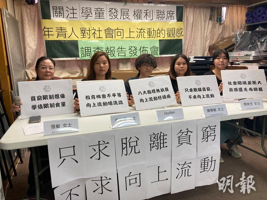 政府2022年起推行「共創明『Teen』」計劃,冀推動基層青年向上流動,協助年輕人擺脫跨代貧窮。關注學童發展權利聯席今(14日)發布「年青人對社會向上流動的觀感」調查報告,結果發現近七成基層青年對短期內脫離貧窮信心薄弱。聯席指政府評估計劃績效指標時側重青年個人能力,未量度扶貧成效,建議政府將扶貧及向上流動納入評估指標,並設立「兒童發展戶口」,真正扶助青年脫貧。