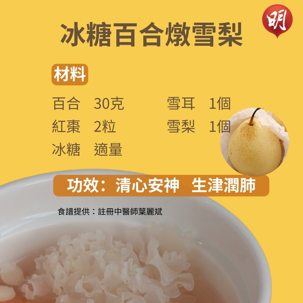 食譜一:冰糖百合燉雪梨(1-2人份)
