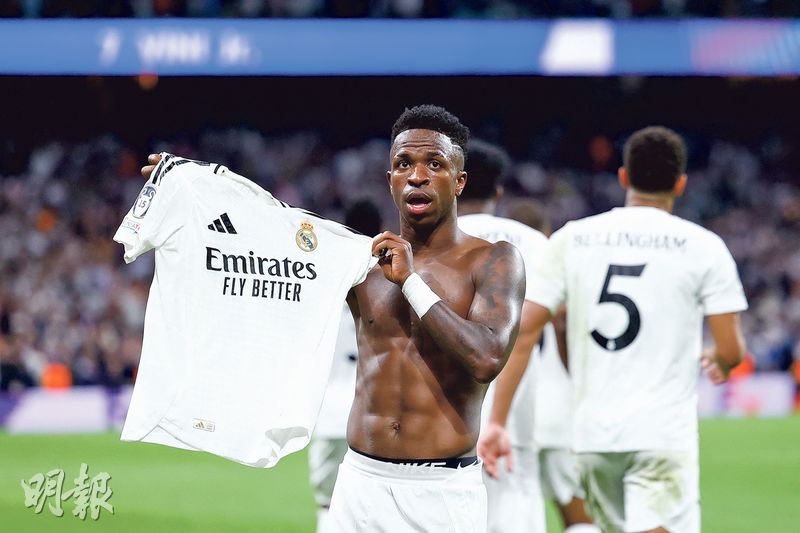 【明報專訊】皇家馬德里昨上半場落後兩球下,藉雲尼斯奧斯祖利亞下半場首在歐聯「戴帽」助球隊主場以5:2反勝上季決賽手下敗將多蒙特,該名巴西隊翼鋒歸功主帥安察洛堤的半場訓示;「肥安」則預祝對方可在下周二凌晨首奪金球獎。